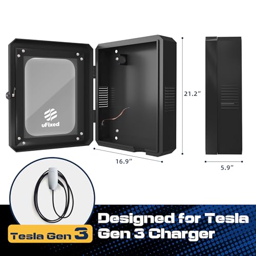 Produktbeschreibung: Ufixed Schutzbox für Wallbox – Abschließbares, wetterfestes Gehäuse mit Sichtfenster und Kabelhalter, passend für Tesla Gen 3 Wall Connector
