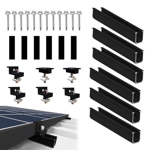 Produktbeschreibung: Uncle yang Solarmodul Halterung Montageset – 12CM Schwarze Alu U-Schienen + Klemmen für 30-35MM PV Module – Photovoltaik Schienensystem für Flachdach Trapezdach Balkonkraftwerk