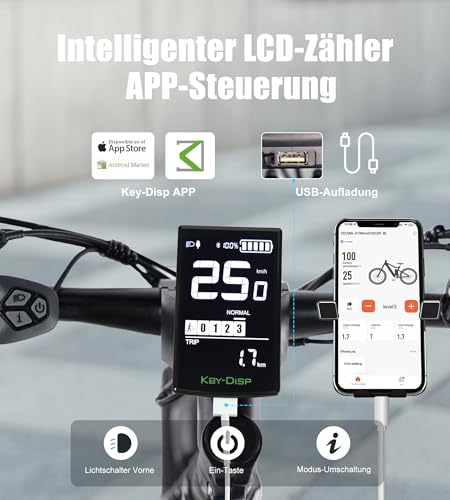 - Smarte App-Steuerung und LCD-Display für Echtzeit-Fahrdaten.