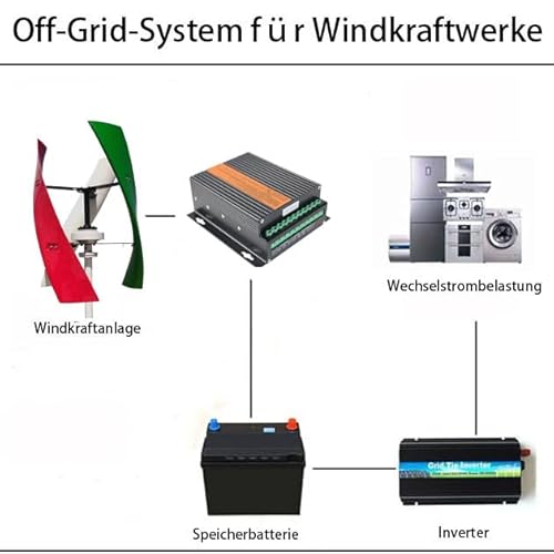 Fragen und Antworten zu Vertikale Windkraftanlage VAWT 800W 12V/24V/48V Mehrfarbig, Windgenerator-Kit mit 3 Glasfaserklingen & MPPT-Laderegler für Heimgebrauch (24, Volt)