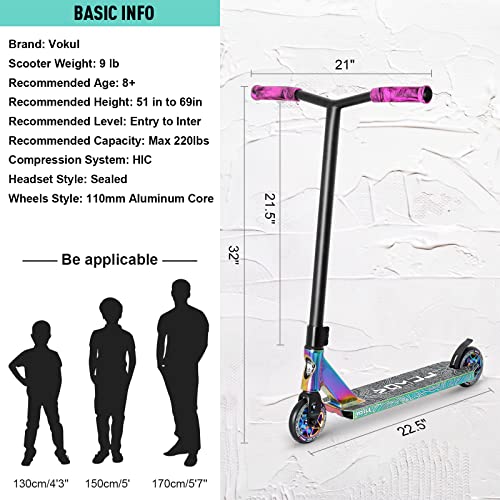 Produktbeschreibung: VOKUL Pro Stunt Scooter BZIT K1- Roller für 7 Jahre und älter – Kinder & Teens & Erwachsene, Stunt Scooter mit 110mm Aluminium Räder Tretroller Freestyle Roller Tricks Geschenk
