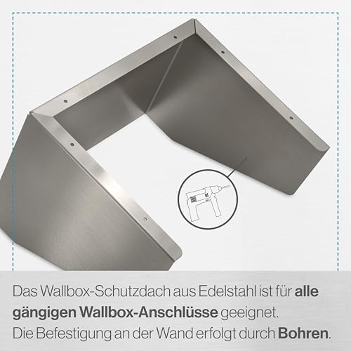 Fragen und Antworten zu Wallbox Dach Wetterschutz Edelstahl – Überdachung zum Schutz vor Regen und Umwelteinflüssen – Schutzdach für e-Auto Ladestation – Elektro-Auto-Ladegeräte Zubehör (Edelstahl, 45×27,5×35 cm)