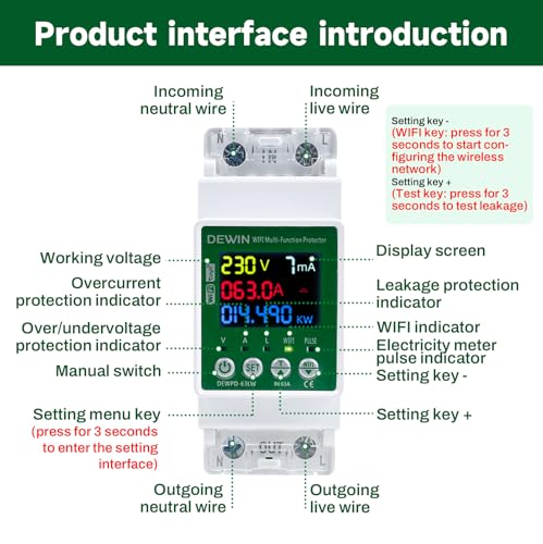 Produktbeschreibung: Wattive Smart Meter,63A 230VAC Smartmeter Stromzähler Wlan Stromzähler Hutschiene Stromzähler Auslesen Wlan Stromzähler 230V mit Überspannungs,Unterspannungs und Überstromschutz