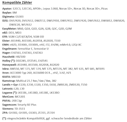 - Stelle sicher, dass dein Stromzähler mit dem IR Lesekopf kompatibel ist.
