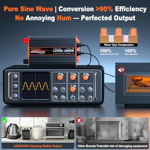Im Vergleich zu anderen Wechselrichtern zeichnet sich dieser 1200W Reiner Sinus Wandler durch seinen reinen Sinus-Ausgang aus, der einen stabileren Strom für induktive Lasten liefert. Während einige günstigere Modelle möglicherweise nur einen modifizierten Sinus bieten, gewährleistet dieser Wechselrichter eine sichere und effiziente Stromversorgung für empfindliche Geräte. Zudem bietet er eine Vielzahl von Anschlussmöglichkeiten (USB, Type-C, AC-Steckdosen), was ihn besonders vielseitig macht.