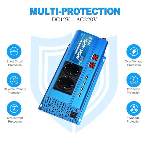Fragen und Antworten zu Wechselrichter 12V 230V 1500W /3000W Reiner Sinus Spannungswandler mit 2 Steckdose 4 USB Anschlüsse 2 LED