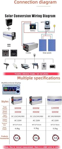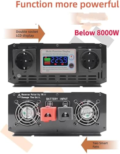 Produktbeschreibung: Wechselrichter 6000W 8000W 12000W Reiner Sinus Spannungswandler DC 12V 24V 48V 60V 72V auf 220V 230V 240V AC Inverter KFZ Umwandler Stromwandler Konverter mit LED,Steckdose(8000W,72Vto220V)