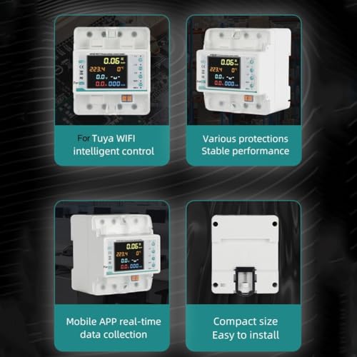 Dank der WiFi-Funktionalität und der Kompatibilität mit der Tuya App, hast du jederzeit und von überall Zugriff auf deine Energiedaten. Du kannst in Echtzeit Leistung, Strom, Spannung, Leckage, Frequenz und den kumulativen Energieverbrauch überwachen. Das bunte LCD-Display sorgt für eine klare und leicht verständliche Darstellung der Messwerte. Die intuitive Benutzeroberfläche vereinfacht die Dateninterpretation und verbessert die Benutzererfahrung erheblich.