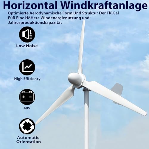 Im Vergleich zu anderen Windkraftanlagen-Komplettsets zeichnet sich dieses System durch seine optimierte Leistungskurve aus, die bereits bei niedrigen Windgeschwindigkeiten eine effiziente Energieerzeugung ermöglicht. Die Rotorblätter aus glasfaserverstärktem Kunststoff (FRP) sind besonders widerstandsfähig und langlebig. Einige andere Modelle benötigen höhere Windgeschwindigkeiten, um ihre Nennleistung zu erreichen. Auch die einfache Installation und die Kompatibilität mit Solarpanelen sind Vorteile gegenüber manchen Konkurrenzprodukten.