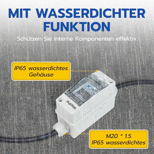 - Wasserdichtes Gehäuse (IP65) für den Außeneinsatz