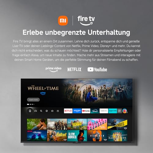 Der Xiaomi TV F 65 ist ein 65-Zoll (165 cm) 4K UHD Smart TV, der dir dank Fire OS8 eine riesige Auswahl an Streaming-Apps bietet. Mit dem Triple Tuner empfängst du deine Lieblingssender, während HDR10 für lebendige Farben sorgt. Dank integrierter Alexa steuerst du den Fernseher und andere Smart-Home-Geräte bequem per Sprachbefehl. Entdecke jetzt eine neue Art des Fernsehens!