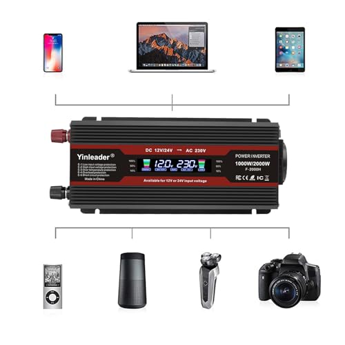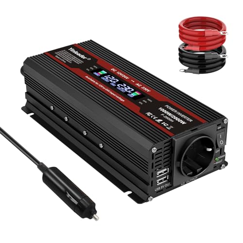 Der Yinleader 12V/24V auf 230V 2000W Wechselrichter ist ein praktischer Spannungswandler, der dir unterwegs oder im Notfall zuverlässig Strom liefert. Mit seiner automatischen Spannungserkennung und dem übersichtlichen LCD-Display bietet er eine einfache und sichere Möglichkeit, deine Geräte zu betreiben. Er verfügt über eine Steckdose und USB-Anschlüsse, um eine breite Palette an Geräten anzuschließen.