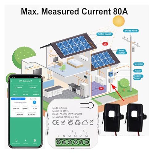 Fragen und Antworten zu YWBL-WH Smart Energy Meter, Einphasiger Bidirektionaler Multifunktionaler WiFi-Strommonitor mit 2PCS 80A-Klemme, für die Energieüberwachung von Solar-PV-Systemen zu Hause