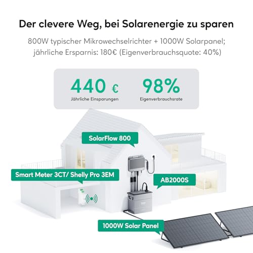 Produktbeschreibung: Zendure 800W Balkonkraftwerk – Balkonkraftwerk 800W komplett Steckdose – neuester SolarFlow 800 800W Mikro Wechselrichter – Solaranlage Komplettset – 430W x2 bifaziale Solarmodule inkl. Zubehör