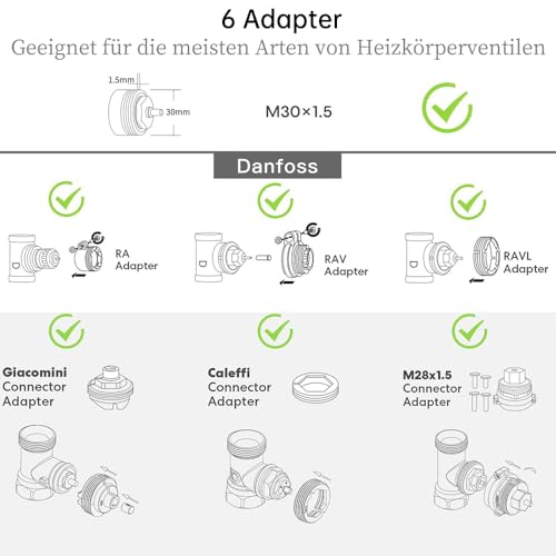 - Stelle sicher, dass dein Heizkörperventil mit dem Thermostat kompatibel ist (Adapter nutzen!).